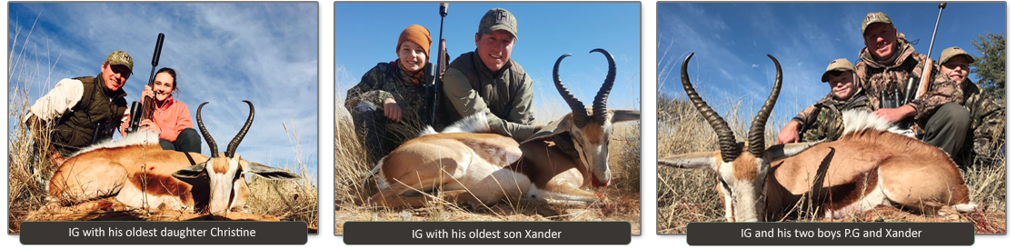 Ig grew up on this family farm where the bush, hunting and animals were an integral part of his life for as far back as he can remember. He took his first Kudu at age six, while his father held out his arms for a rifle rest. That Kudu bull is mounted in the lodge and remains to this day, a reminder of his passion for hunting which only has intensified over the years. Ig and Tania have four beautiful children; Christine, Xander, PG, and Isabella, each of whom are passionate about hunting and the outdoors as well.